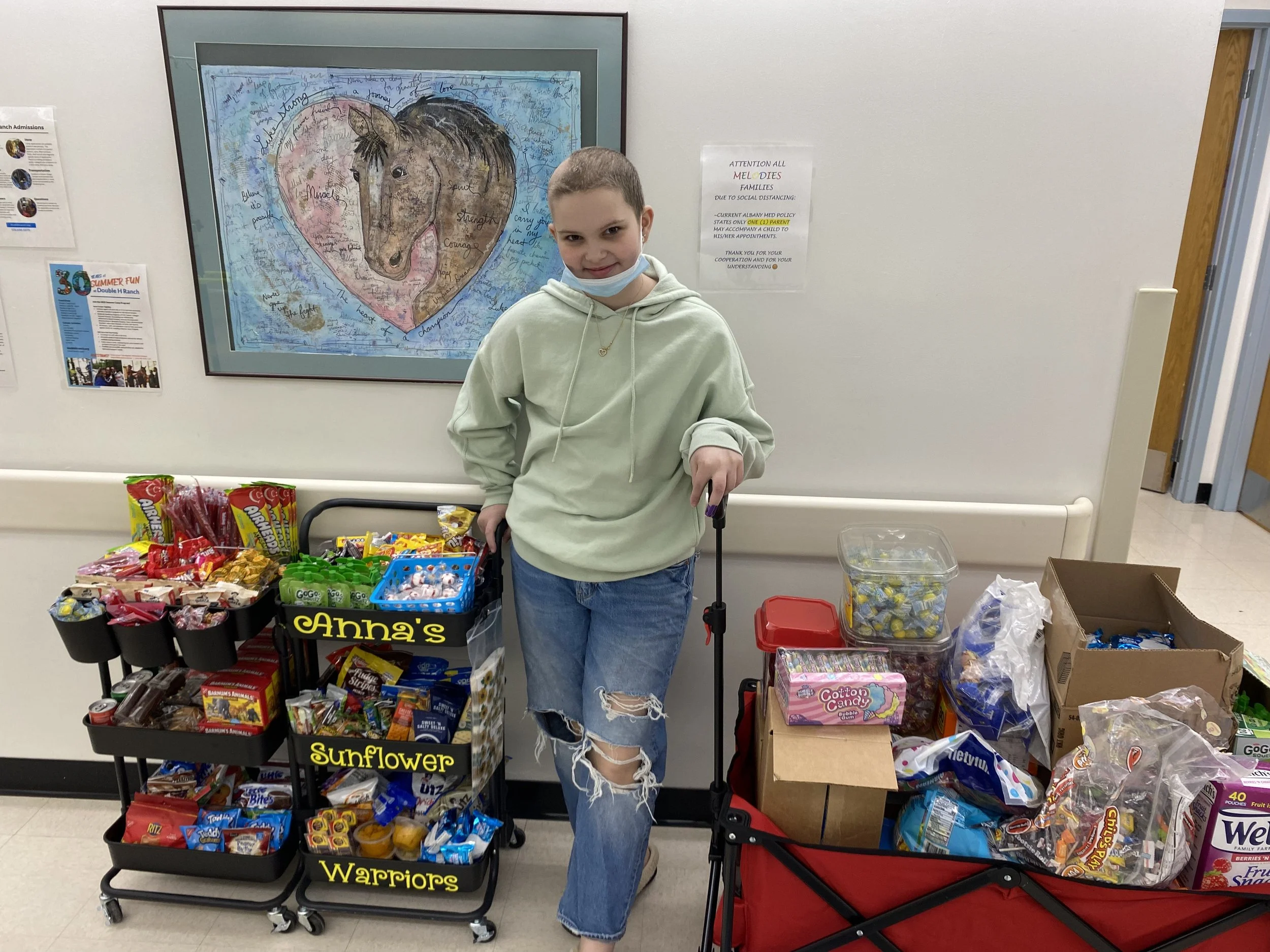 Anna’s Sunflower Warriors Foundation is a non profit dedicated to give support, gifts, and guidance to those families fighting pediatric cancer or a life threatening illness. We also will continue to be part of our community and continue to partner with our school district to help families/students in need as well. But above all else our main mission will continue to be supporting The Melodies Center Pediatric Oncology at Albany Medical Center with our candy cart.
